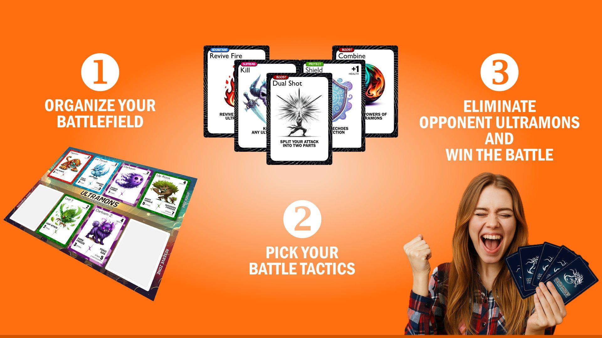 Enter the world of Ultramons where Nature, Fire, Water, and Poison monsters clash in fast-paced, strategic card battles. Use tactical positioning, surprise powers, and smart combos to outplay your opponent. The perfect game for family game nights, with kids and adults.