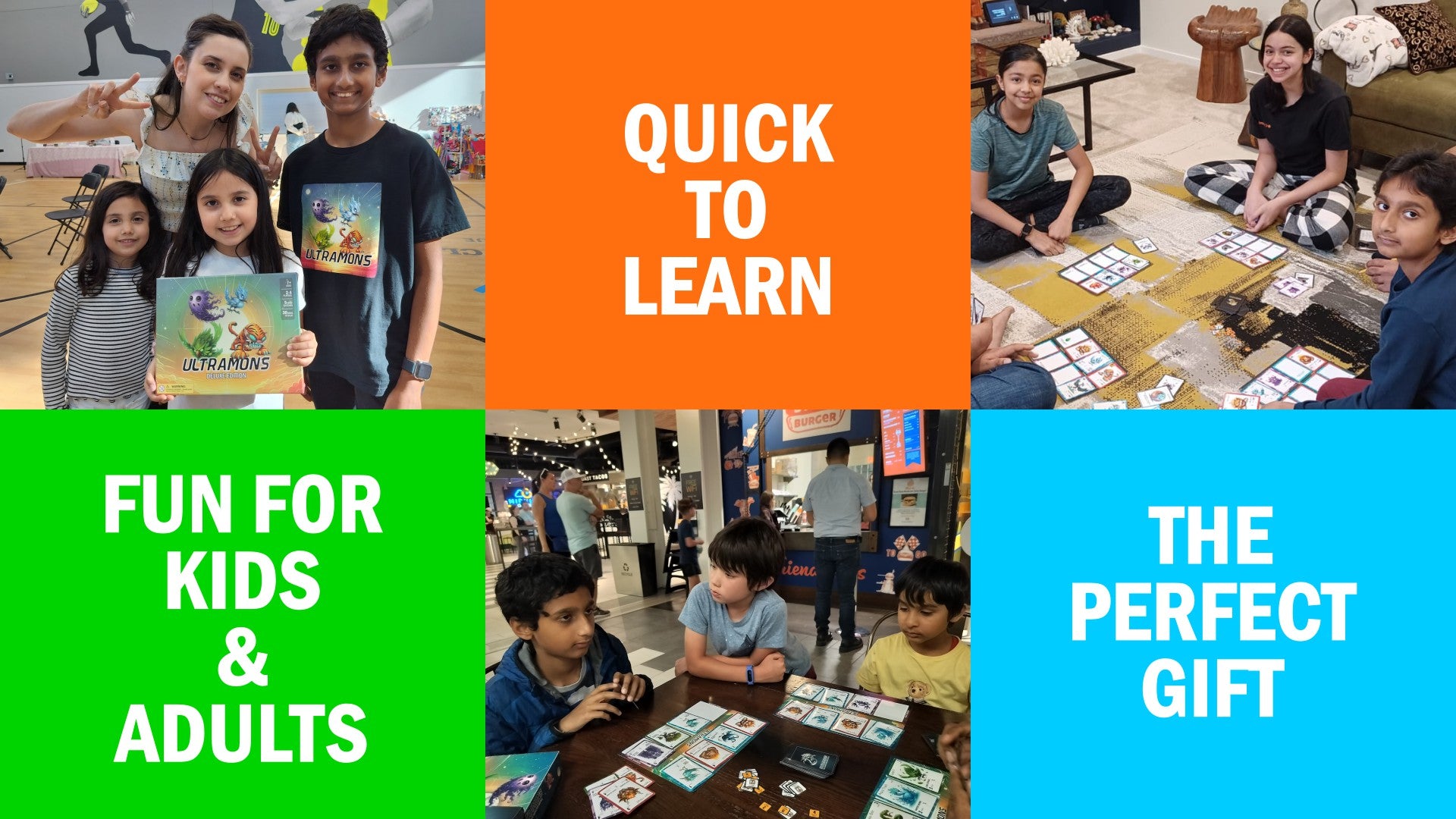 2-4 player card game for ages 7 and up. Ultramons promotes critical thinking, decision-making, and planning skills. With simple rules and quick gameplay, it’s easy to learn but packed with strategy—great for kids, teens, families, and even game-loving adults.